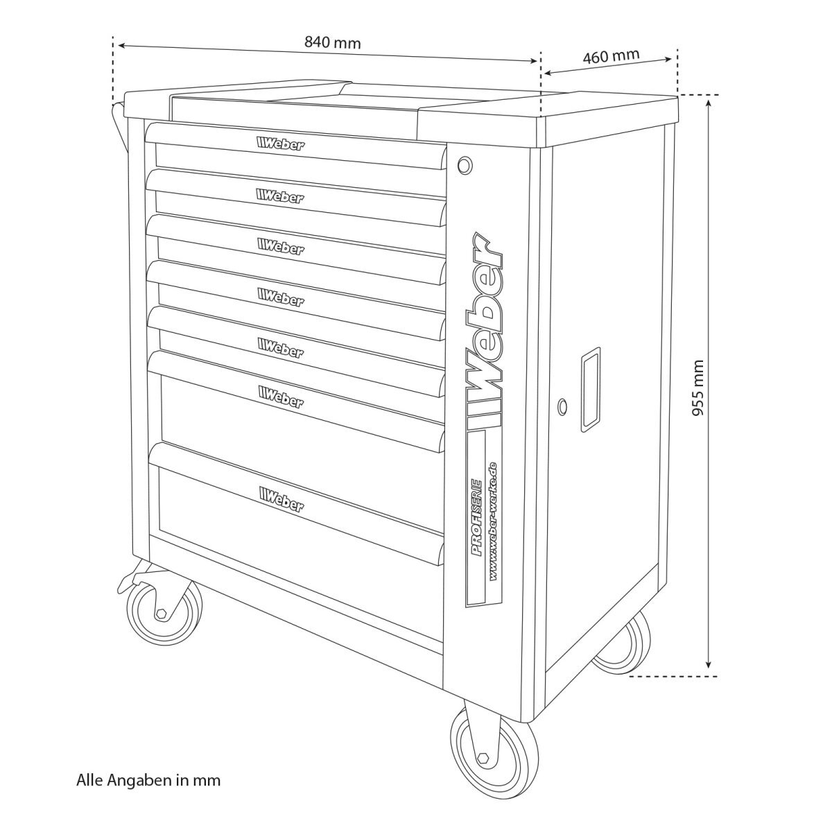 Αυτός η εργαλειοφόρος περιλαμβάνει όλα τα απαραίτητα εργαλεία που χρειάζεστε για καθημερινή χρήση. Είναι κατασκευασμένος εξ ολοκλήρου από υψηλής ποιότητας, ηλεκτροστατικά βαμμένο ατσάλι για μεγάλη αντοχή και διάρκεια ζωής. Διαθέτει δύο περιστρεφόμενους τροχούς με φρένα κλειδώματος, εξασφαλίζοντας σταθερότητα και εύκολη μετακίνηση. Όλα τα συρτάρια είναι εξοπλισμένα με ρουλεμάν και κλείνουν εύκολα χάρη στον πλευρικά τοποθετημένο μηχανισμό κλειδώματος. Το μέγιστο φορτίο ανά συρτάρι είναι 30 kg.